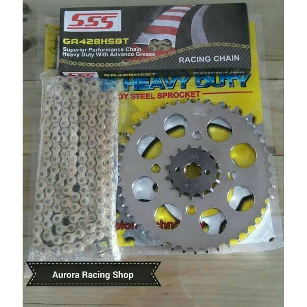 Beli Gear Set SSS 428 Honda CB 150 R - New CB 150 R - Verza - New Mega Pro - Neotech - Sonic 150R - GTR 150R - CBR 150 Series Rantai Hsbt. Harga GEAR SET HONDA MEGA PRO NEW CB150 OLD TIGER BARANG ORI HGP. Gear set SSS CB150R 428 SB 130 GOLD.